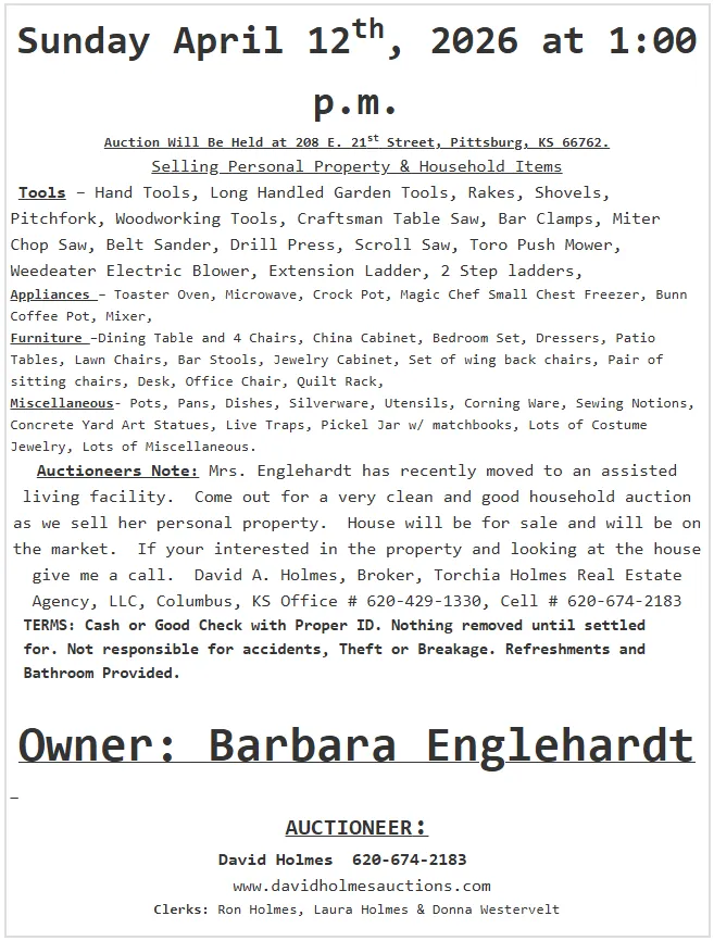 On auction day, David Holmes leads a professional, fast-paced bidding process, ensuring competitive bids and the best results for your items.