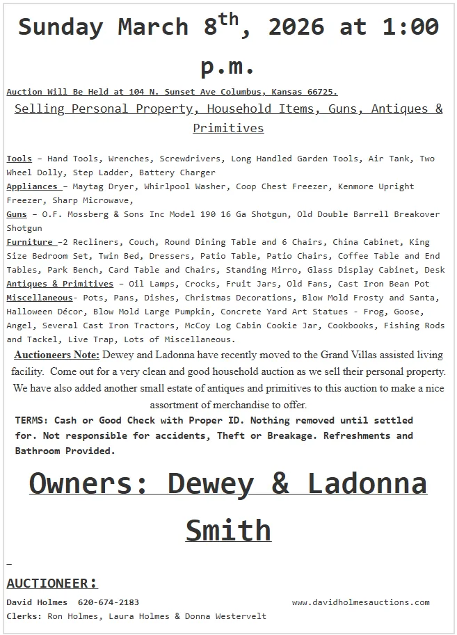 On auction day, David Holmes leads a professional, fast-paced bidding process, ensuring competitive bids and the best results for your items.